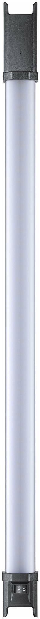 Встроенный литий-ионный аккумулятор обеспечит два часа беспрерывной работы на полной мощности при полном заряде батареи или проработает больше времени, в режиме спецэффектов или если яркость светового потока не будет максимальной. Во время более длительной съемки осветитель может питаться от стандартной электрической розетки при помощи штатного сетевого адаптера. Длина осветителя 75 см и вес 0.73 кг позволят удерживать прибор в руке или закрепить практически в любом месте даже на кинотейп. В комплект также входят пластиковый клипса-зажим для установки.