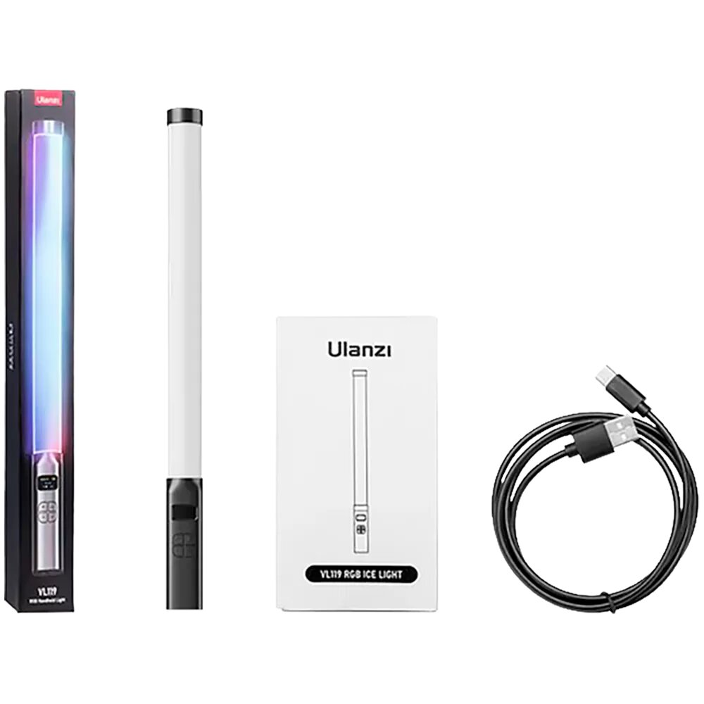 | Дополнительная информация | Светодиодный осветитель от фирмы Ulanzi имеет 38 холодных, 38 теплых, а также 38 RGB светодиодов. Он прекрасно подходит для применения в фото и видео съёмке, как основной или вспомогательный источник освещения. Мощность осветителя 7,5 W. Цветовая температура регулируется от 2500 до 9000 К, яркость от 1 до 100%. У модели есть дополнительные режимы освещения, всего 20 спецэффектов, такие как молния, огни полицейской машины, машины скорой, тв, огонь свечи, градиент, дискотека, фейерверк, романтика, папарацци и тп., которые можно использовать при съемке видео и фото для художественного эффекта. В нижней части осветителя расположены порт питания USB-C (кабель в комплекте) и резьба 1/4" для установки на штатив или другой держатель. Длина трубки 37 см. Осветитель имеет встроенный аккумулятор емкостью 2600 мАч. Время автономной работы которого около 70 минут (на 100% яркости). Устройство заряжается через порт Type-C, время зарядки около 120 минут. Вес светильника составляет 205 г. |