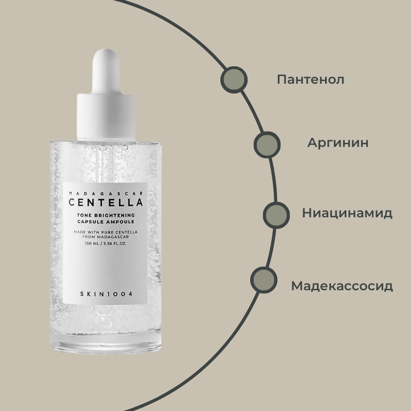 | Активный ингредиент | витамин B3 (ниацинамид), витамин C (аскорбиновая кислота), пробиотики, транексамовая кислота, центелла азиатская |
