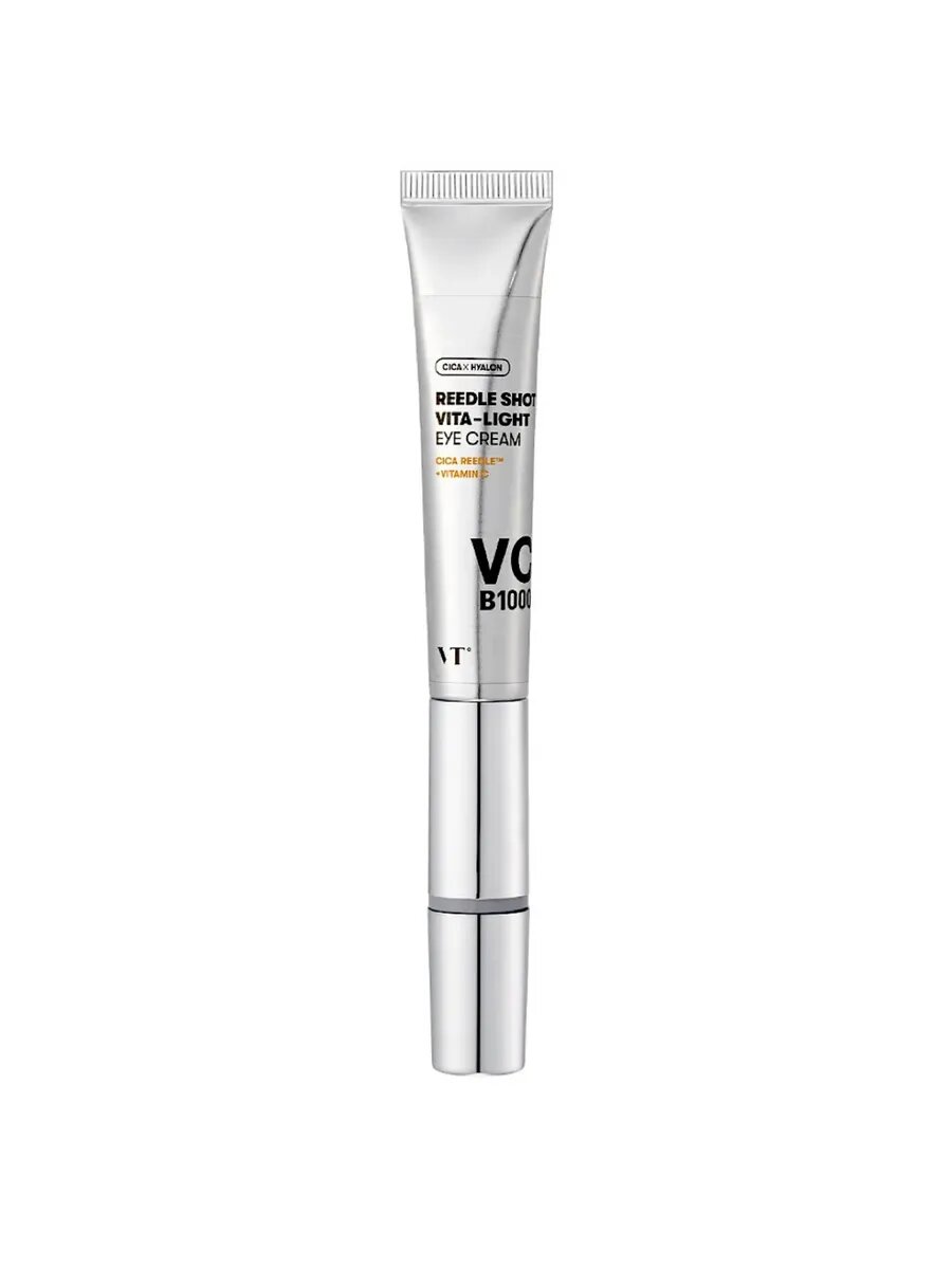 VT Крем для век с витамином С (15мл) Reedle Shot Vita-Light eye cream - премиальный, крем для век сочетает в себе: витамин С и Е, феруловую кислоту- этот комплекс заметно усиливает сияние кожи, улучшает внешний вид, выравнивает рельеф. Крем оснащен специальным аппликатором, он не только питает и увлажняет кожу, но и оказывает легкий массаж. Крем уменьшает появление морщин и гиперпигментацию. В составе крема мощные антиоксидантные и осветляющие компоненты (глутатион, ниацинамид, токоферол), которые способствуют предотвращению гиперпигментации и преждевременного старения, регулируют и стимулируют синтез коллагена, повышая его стабильность, поддерживают упругость и эластичность кожи. Также предотвращают проявление морщин и сокращают уже имеющиеся, блокируют тирозиназы и производство маланина, тем самым предотвращая возрастную пигментацию, способствуют эффективному осветлению пигментных пятен и выравнивают цвет лица, обеспечивая неповторимое сияние кожи. Крем предотвращает появление тонких линий и морщин в нежной зоне вокруг глаз, одновременно повышая эластичность кожи. Уникальный дозатор с массажным эффектом, помогает активировать микроциркуляцию и улучшает впитывание крема, обеспечивая массаж при нанесении, избавляет от отёчности. Крем имеет легкую гелевую текстуру, с быстрым впитыванием, не оставляет жирного блеска. Регулярное использование крема с массажным эффектом не только улучшает состояние кожи вокруг глаз, но и дарит ощущение комфорта и расслабления. Средство обеспечивает омолаживающий эффект. Подходит для любого типа кожи. Способ применения: Снять колпачок с крема, выдавить небольшую горошину крема и распределить вокруг глаз. Когда вы удерживаете аппликатор - массажер, включается автоматически. Наконечник работает от батареек. Для смены батарейки: 1. Поверните соединение между тюбиком и устройством, чтобы открыть его. 2 Потяните за серебристую сенсорную панель, чтобы отделить ее. 3. После замены батарейки снова вставьте снятую сенсорную панель. 4. Закройте соединение трубки и устройства. В составе: Water, Niacinamide(100,000 ppm), Glycerin, Propan ediol, 1,2-Hexanediol, Capric Trigly ceride, Glyceryl Poly methacrylate, Squalane, Panthenol, Ascor bic Acid (0.1ppm), Toco pherol(1ppm), Ferulic Acid, Glutathione, Sili ca, (~)-alpha-bisabolol, Adenosine, Centella Asi atica Extract, Madeca ssoside, Madecassic Acid, Asiaticoside, Asi atic Acid, Propolis Ex tract, Sodium Hyaluronate, Cyanocobala min, Retinol, Linoleic Acid, Riboflavin, Beta -Carotene, Inositol, Thi HCI, Beta-Glu can, Biotin, Folic Acid Pyridoxine, Glycine So ja (Soybean) Oil, Tro methamine, Ammo nium Acryloyldimeth yitaurate VP Copoly, Carbomer, Acryla tes/C10-30 Alkyl Acry Crosspolymer, Xanthan Gum, Ethylhexy, Butylene Glycol, Pantolactone, Co ptis Japonica Root Extract, Eriobotrya Japoni ca Leaf Extract, Hydro genated Lecithin, Polyglyceryl-10 Stearate, Mentha Viridis (Spear mint) Extract, Sodium Ascorbyl Phosphate