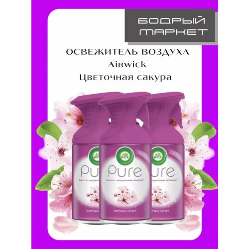 Комплект 3 штуки. Освежитель воздуха с ароматом Цветочная Сакура 250мл не содержит воды и эффективно устраняет неприятные запахи без мокрого распыления. Используйте освежители воздуха Air Wick Pure в каждой комнате, наполняя ваш дом свежими и приятными ароматами. Хранить в недоступном для детей и животных месте. Использовать с осторожностью при повышенной чувствительности к парфюмерным отдушкам. Освежитель воздуха не является заменой надлежащих мер гигиены. Использовать только в хорошо проветриваемых помещениях.