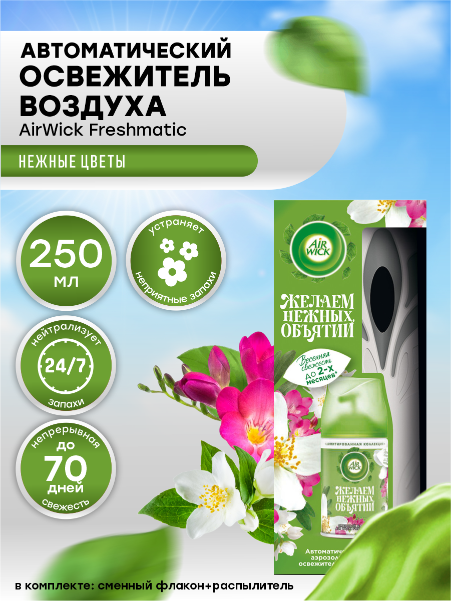 Купить Автоматический освежитель воздуха Air Wick Freshmatic со сменным баллоном Нежные цветы 250 мл. с доставкой по всей России. Автоматический освежитель воздуха Air Wick Freshmatic со сменным баллоном Нежные цветы 250 мл.: сравнение цен, характеристики, фото, актуальное наличие и цены.