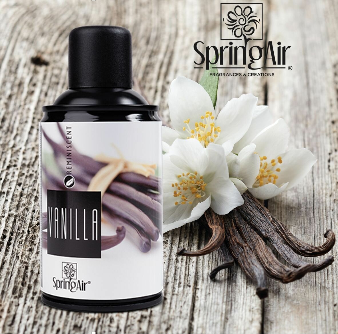 Аэрозольный ароматизатор-освежитель воздуха от греческой компании Spring Air с ароматом ванили. Теплый, гармоничный, нежный аромат цветов ванили. Не имеет ничего общего с запахом кондитерского ванилина. Напротив, он благородный, классический, обволакивающий. Хорошо воспринимается всеми группами посетителей. Вы можете распылять этот аромат как вручную, нажатием на клапан-дозатор, так и через диспенсер, задав график распыления аромата и интенсивность ароматизации.