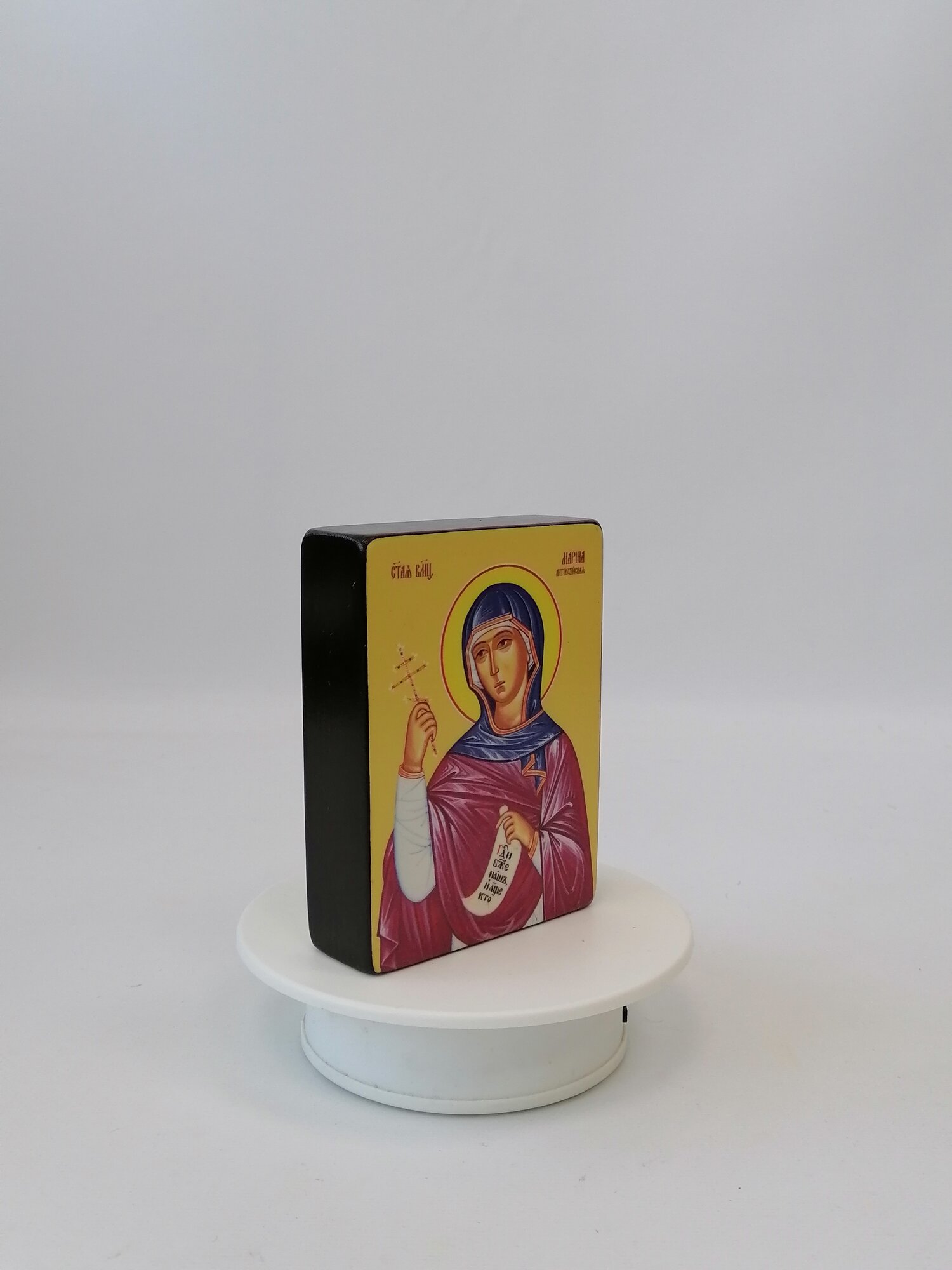 Купить Освященная икона на дереве ручной работы — Марина (Маргарита) Антиохийская, святая, 9x12x3 см, арт Ид4426 с доставкой по всей России.