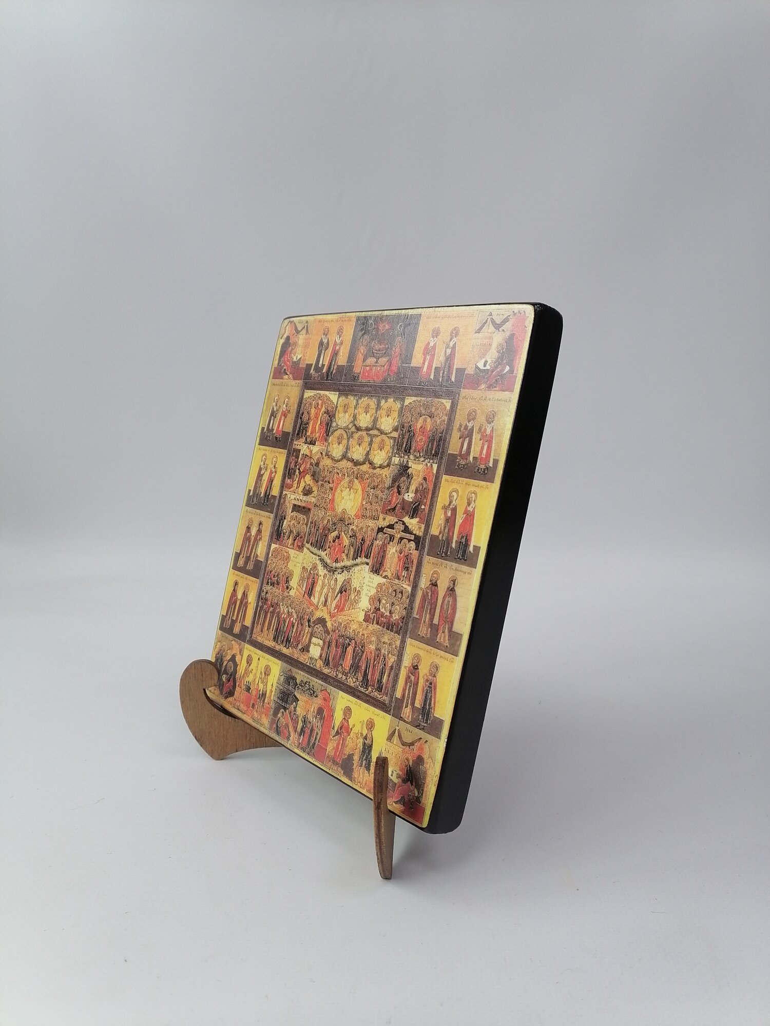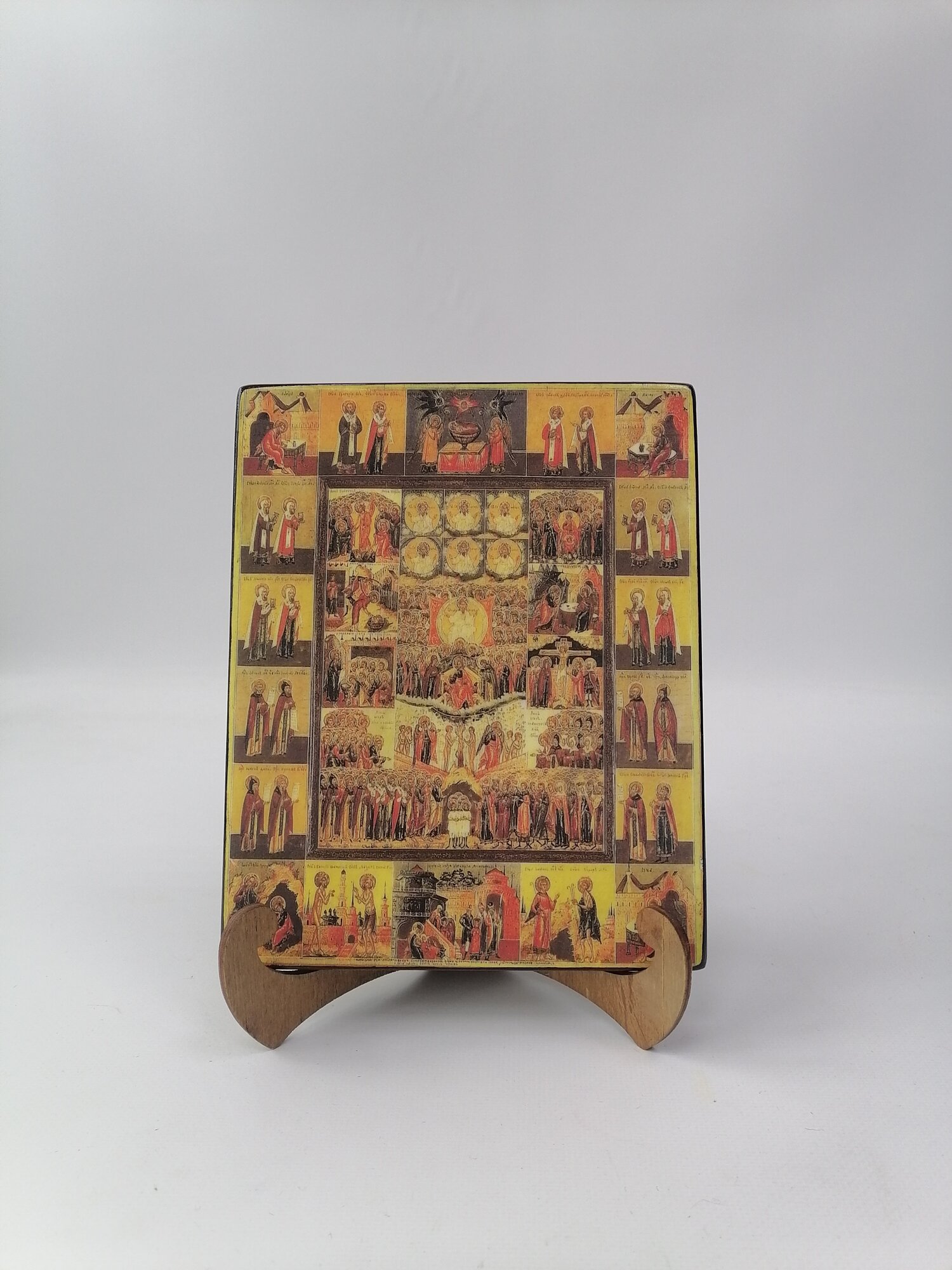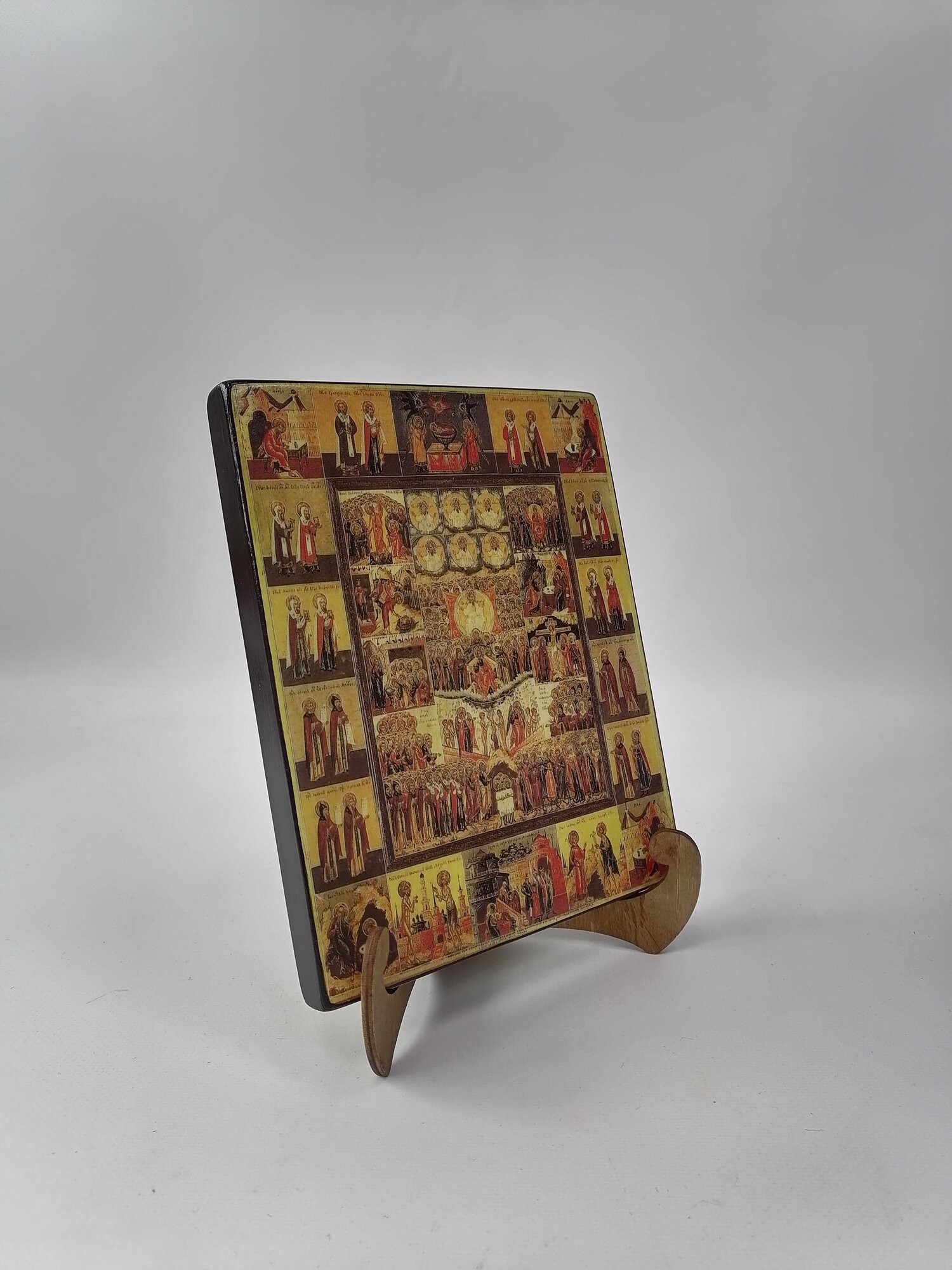 Купить Освященная икона на дереве ручной работы — Собор всех святых, арт И1350-5, 16х20х1,8 см с доставкой по всей России.