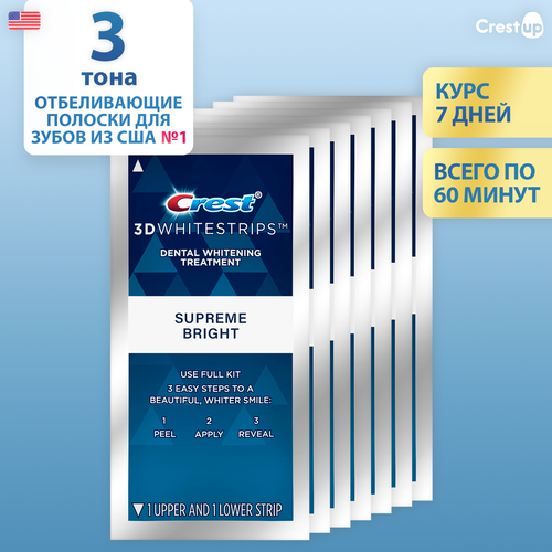 Купить Отбеливающие полоски для зубов Crest 3D Whitestrips Supreme Bright 7 пакетиков 1/3 курса с доставкой по всей России. Отбеливающие полоски для зубов Crest 3D Whitestrips Supreme Bright 7 пакетиков 1/3 курса: сравнение цен, характеристики, фото, актуальное наличие и цены.