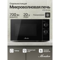 Общие данные Ширина, см 44.5 Высота, см 26 Глубина, см 32.5 Длина сетевого шнура 100 см Тип микроволновой печи отдельностоящая Объем камеры, л 20 дополнительная информация Внутренняя поверхность камеры эмаль лёгкой очистки Мощность подключения, Вт 1050 комплектация Поворотный стол да Принадлежности поворотный стол 255 мм режимы работы Мощность микроволн, Вт 700 Уровни мощности 5 Размораживание да основные данные Управление поворотный переключатель Цвет чёрный функции Таймер да
