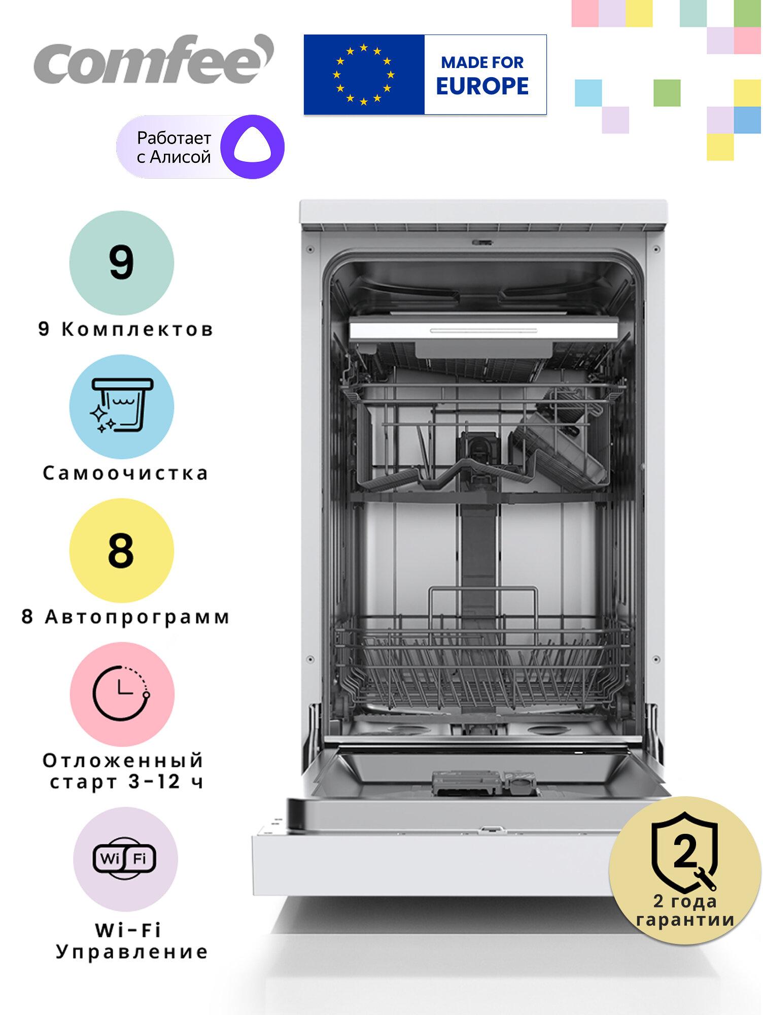 Отдельностоящая посудомоечная машина Comfee CDW452Wi, Wi-Fi, 8 программ, самоочистка, экспресс-мойка, отложенный старт: сравнение цен, характеристики, фото, актуальное наличие и цены.