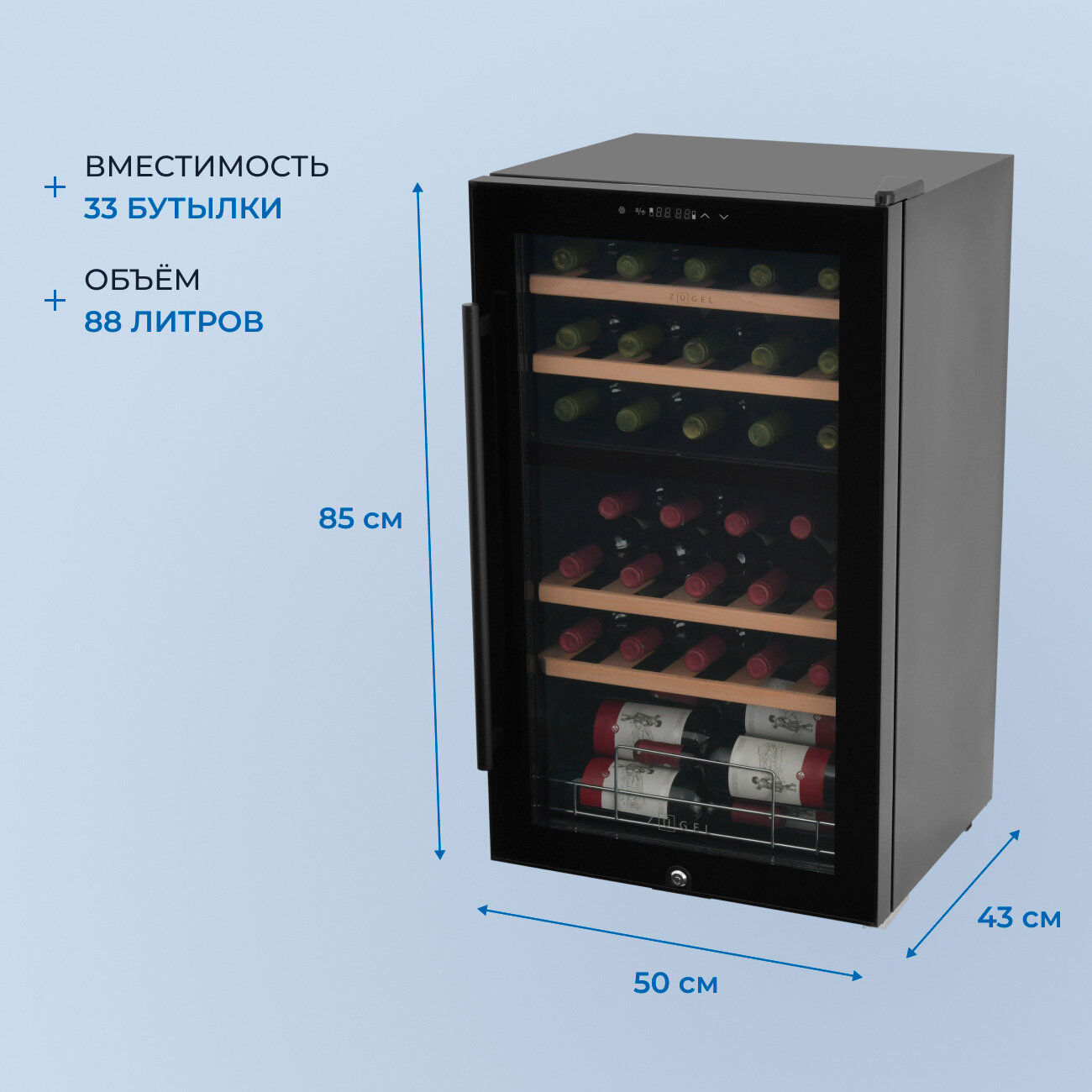 Отдельностоящий винный шкаф ZUGEL ZCWF331DB, УФ тонировка стекла: сравнение цен, характеристики, фото, актуальное наличие и цены.