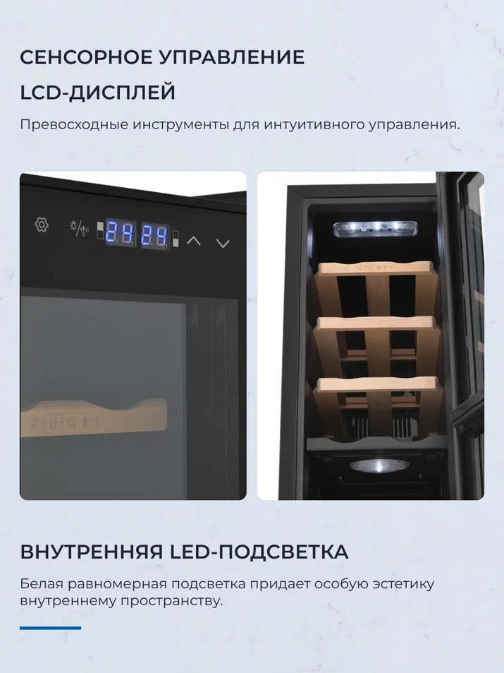 Отдельностоящий винный шкаф ZUGEL ZTWF181DB Dual Zone, УФ тонировка стекла: сравнение цен, характеристики, фото, актуальное наличие и цены.