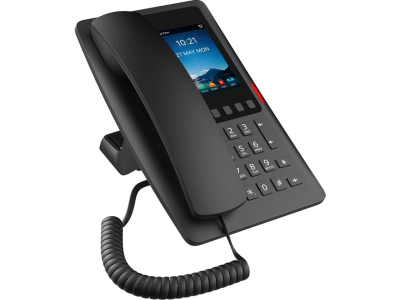 Отельный SIP-телефон Fanvil H6W, 2 SIP-акк, 3.5″, 320×480 цвет. экран, POE, бп в комп, 1×100 Mbps, Wi-Fi 6, чёрный, 5 прог. клав.