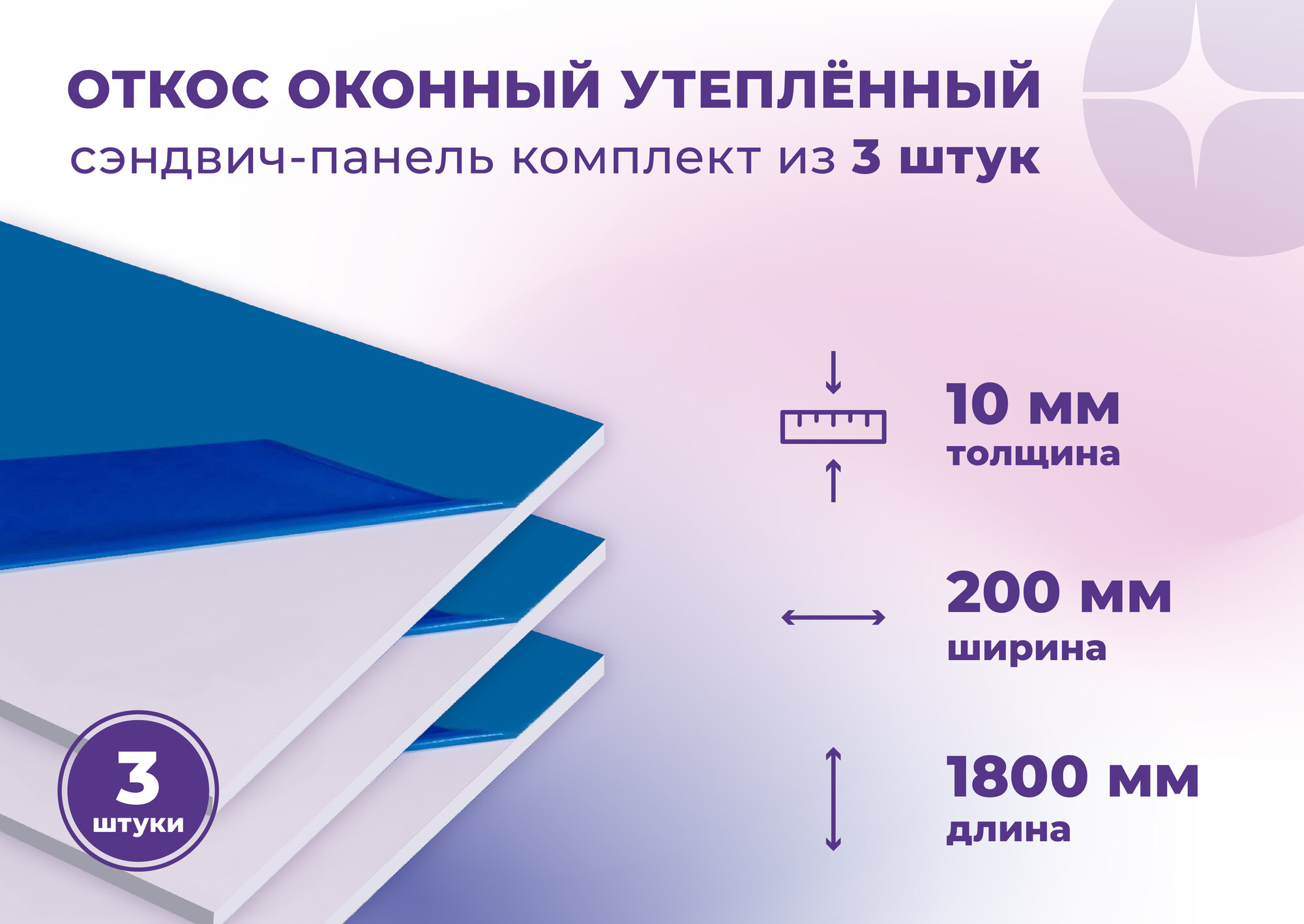 Откос оконный (Сендвич панель) для отделки пластиковых окон 3 штуки ПВХ размером 200х1800 мм: сравнение цен, характеристики, фото, актуальное наличие и цены.