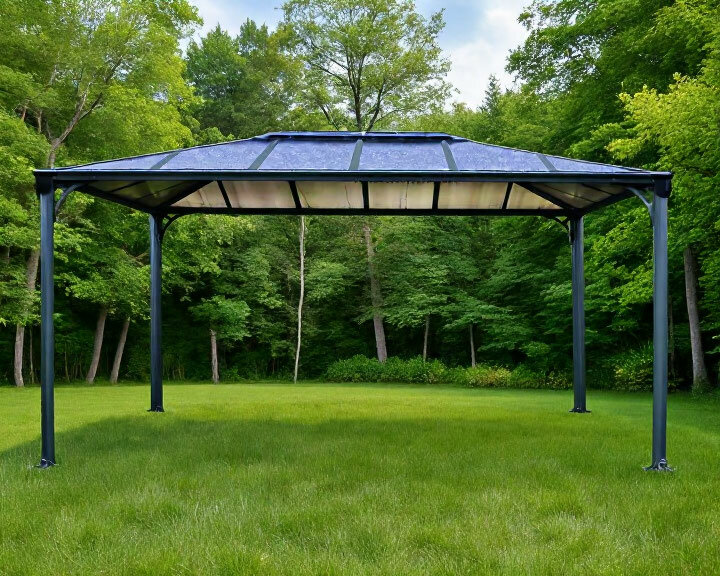 Элегантная садовая беседка. Прочная, устойчивая к ржавчине алюминиевая конструкция, рассчитанная на суровые погодные условия. Двустенная бронзовая тонированная кровля из поликарбоната. Не желтеет и не становится хрупкой с течением времени. Запатентованная безвинтовая система сборки остекления, специально разработанная для предотвращения протечек во время дождя. 100% защита от ультрафиолетового излучения позволяет бесконечно проводить время на свежем воздухе. Не требует обслуживания и долговечна благодаря исключительно прочным материалам. Изготовлена из 100% перерабатываемых компонентов.