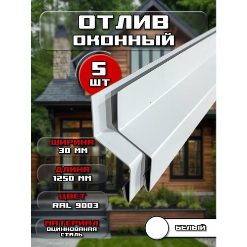 Отлив 30 мм RAL9003 - это идеальный выбор для тех, кто хочет создать красивый и функциональный внешний вид своего дома. Отлив имеет длину 1,25 метра и ширину полки 30 мм, что позволяет использовать и перевозить его без проблем.