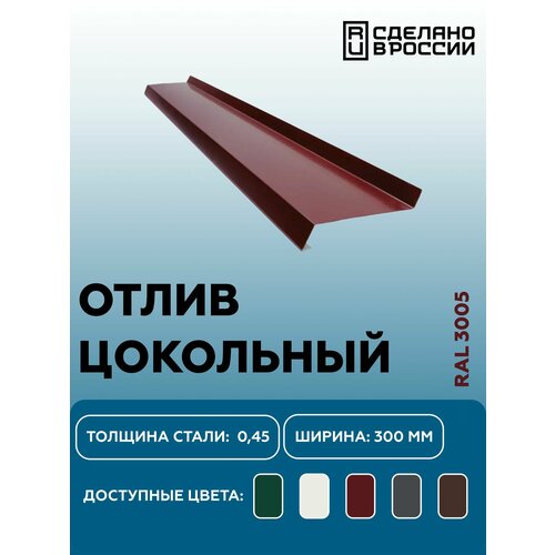 Купить Отлив для цоколя 300мм RAL-3005 красный 2000мм 10шт с доставкой по всей России. Отлив для цоколя 300мм RAL-3005 красный 2000мм 10шт: сравнение цен, характеристики, фото, актуальное наличие и цены.