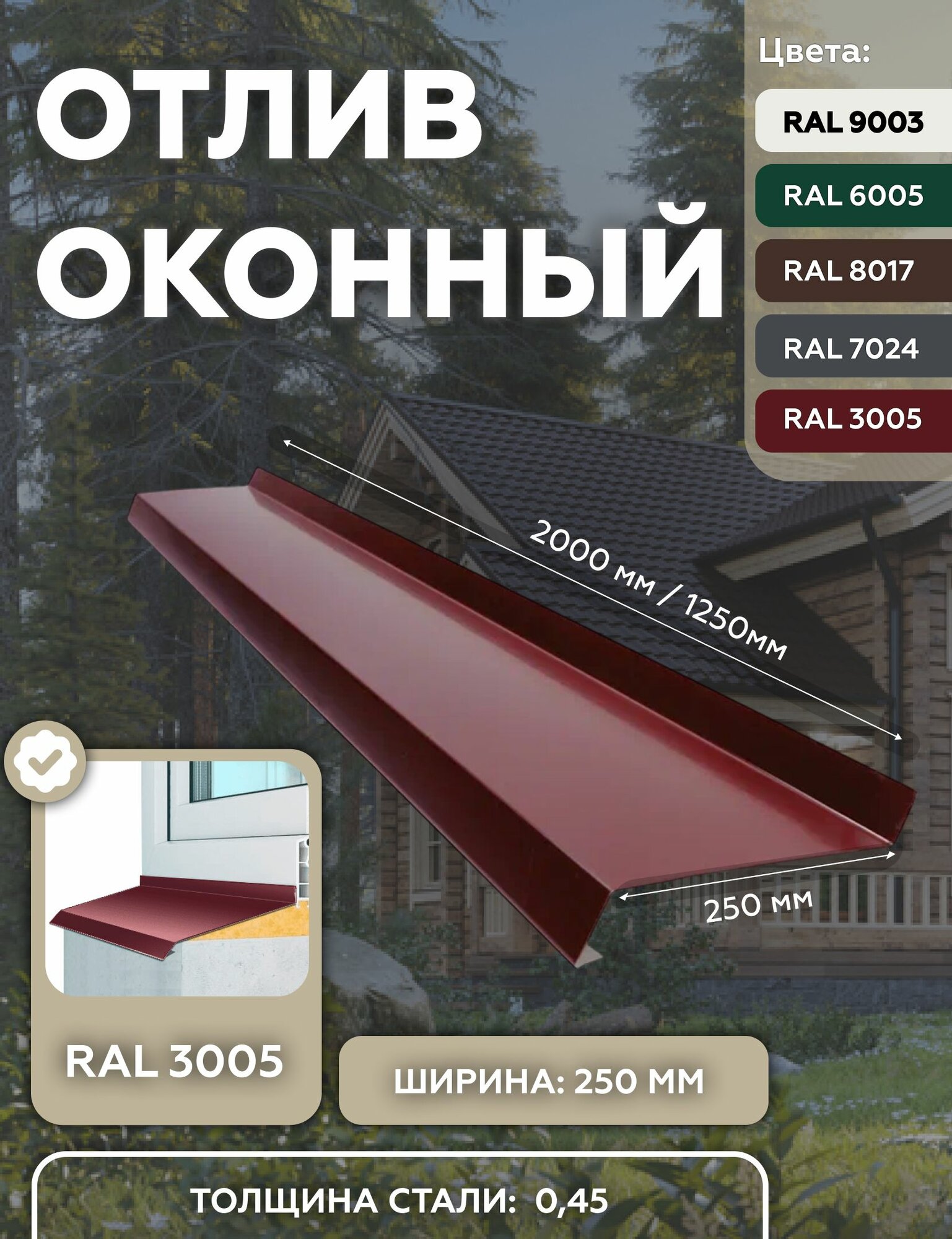 Купить Отлив оконный 250мм RAL-3005 красный 1250мм 4шт с доставкой по всей России. Отлив оконный 250мм RAL-3005 красный 1250мм 4шт: сравнение цен, характеристики, фото, актуальное наличие и цены.