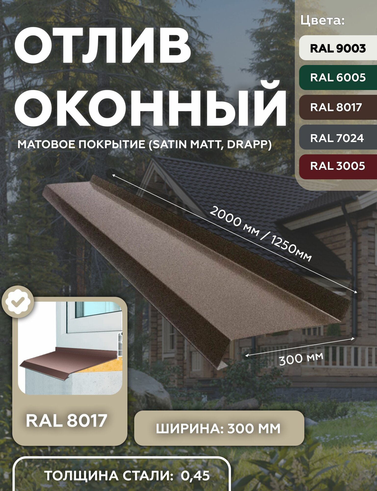 Отлив оконный 300мм матовый (Satin, Drap) RAL-8017 коричневый 1250мм 4шт: сравнение цен, характеристики, фото, актуальное наличие и цены.