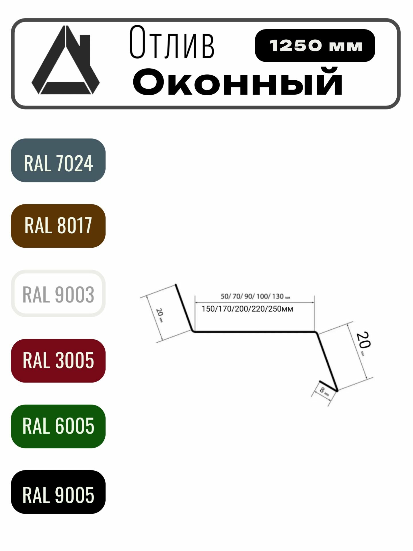 Отлив оконный длина 1250 мм ширина 120 10шт RAL 7024 серый: сравнение цен, характеристики, фото, актуальное наличие и цены.