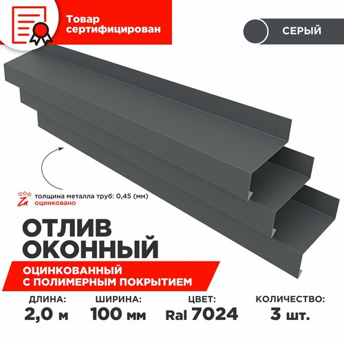 Купить Отлив оконный ширина полки 100мм/ отлив для окна / цвет серый(RAL 7024) Длина 2м, 3 штуки в комплекте с доставкой по всей России. Отлив оконный ширина полки 100мм/ отлив для окна / цвет серый(RAL 7024) Длина 2м, 3 штуки в комплекте: сравнение цен, характеристики, фото, актуальное наличие и цены.