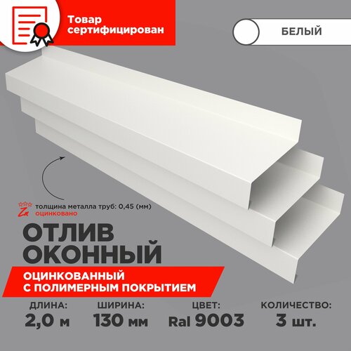 Отлив оконный ширина полки 130мм/ отлив для окна / цвет белый(RAL 9003) Длина 2м, 3 штуки в комплекте: сравнение цен, характеристики, фото, актуальное наличие и цены.