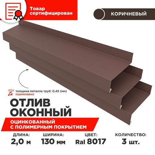 Купить Отлив оконный ширина полки 130мм, цвет шоколад(RAL 8017) Длина 2м, 3 штуки в комплекте с доставкой по всей России. Отлив оконный ширина полки 130мм, цвет шоколад(RAL 8017) Длина 2м, 3 штуки в комплекте: сравнение цен, характеристики, фото, актуальное наличие и цены.