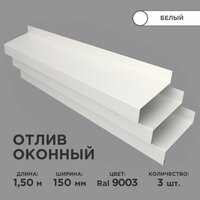 Купить Отлив оконный ширина полки 150мм/ отлив для окна / цвет белый(RAL 9003) Длина 1,5м, 3 штуки в комплекте с доставкой по всей России.