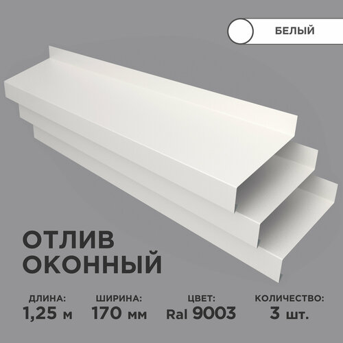 Купить Отлив оконный ширина полки 170мм/ отлив для окна / цвет белый(RAL 9003) Длина 1,25м, 3 штуки в комплекте с доставкой по всей России. Отлив оконный ширина полки 170мм/ отлив для окна / цвет белый(RAL 9003) Длина 1,25м, 3 штуки в комплекте: сравнение цен, характеристики, фото, актуальное наличие и цены.