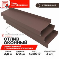Отлив оконный ширина полки 170мм, цвет шоколад(RAL 8017) Длина 2м, 3 штуки в комплекте: сравнение цен, характеристики, фото, актуальное наличие и цены.