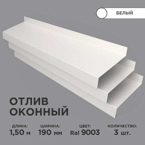 Купить Отлив оконный ширина полки 190мм/ отлив для окна/ цвет белый(RAL 9003) Длина 1,5м, 3 штуки в комплекте с доставкой по всей России. Отлив оконный ширина полки 190мм/ отлив для окна/ цвет белый(RAL 9003) Длина 1,5м, 3 штуки в комплекте: сравнение цен, характеристики, фото, актуальное наличие и цены.