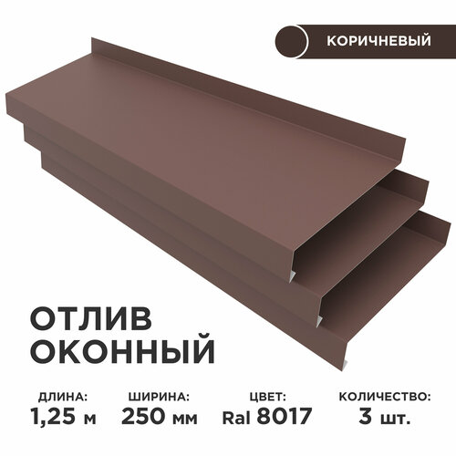 Купить Отлив оконный ширина полки 250мм/ отлив для окна / цвет коричневый(RAL 8017) Длина 1,25м, 3 штуки в комплекте с доставкой по всей России. Отлив оконный ширина полки 250мм/ отлив для окна / цвет коричневый(RAL 8017) Длина 1,25м, 3 штуки в комплекте: сравнение цен, характеристики, фото, актуальное наличие и цены.