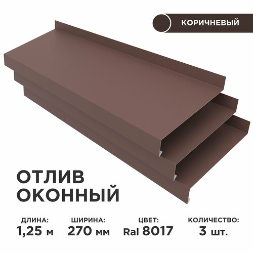 Купить Отлив оконный ширина полки 270мм/ отлив для окна / цвет коричневый(RAL 8017) Длина 1,25м, 3 штуки в комплекте с доставкой по всей России. Отлив оконный ширина полки 270мм/ отлив для окна / цвет коричневый(RAL 8017) Длина 1,25м, 3 штуки в комплекте: сравнение цен, характеристики, фото, актуальное наличие и цены.