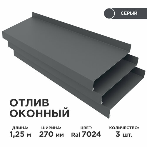Купить Отлив оконный ширина полки 270мм/ отлив для окна / цвет серый(RAL 7024) Длина 1,25м, 3 штуки в комплекте с доставкой по всей России. Отлив оконный ширина полки 270мм/ отлив для окна / цвет серый(RAL 7024) Длина 1,25м, 3 штуки в комплекте: сравнение цен, характеристики, фото, актуальное наличие и цены.