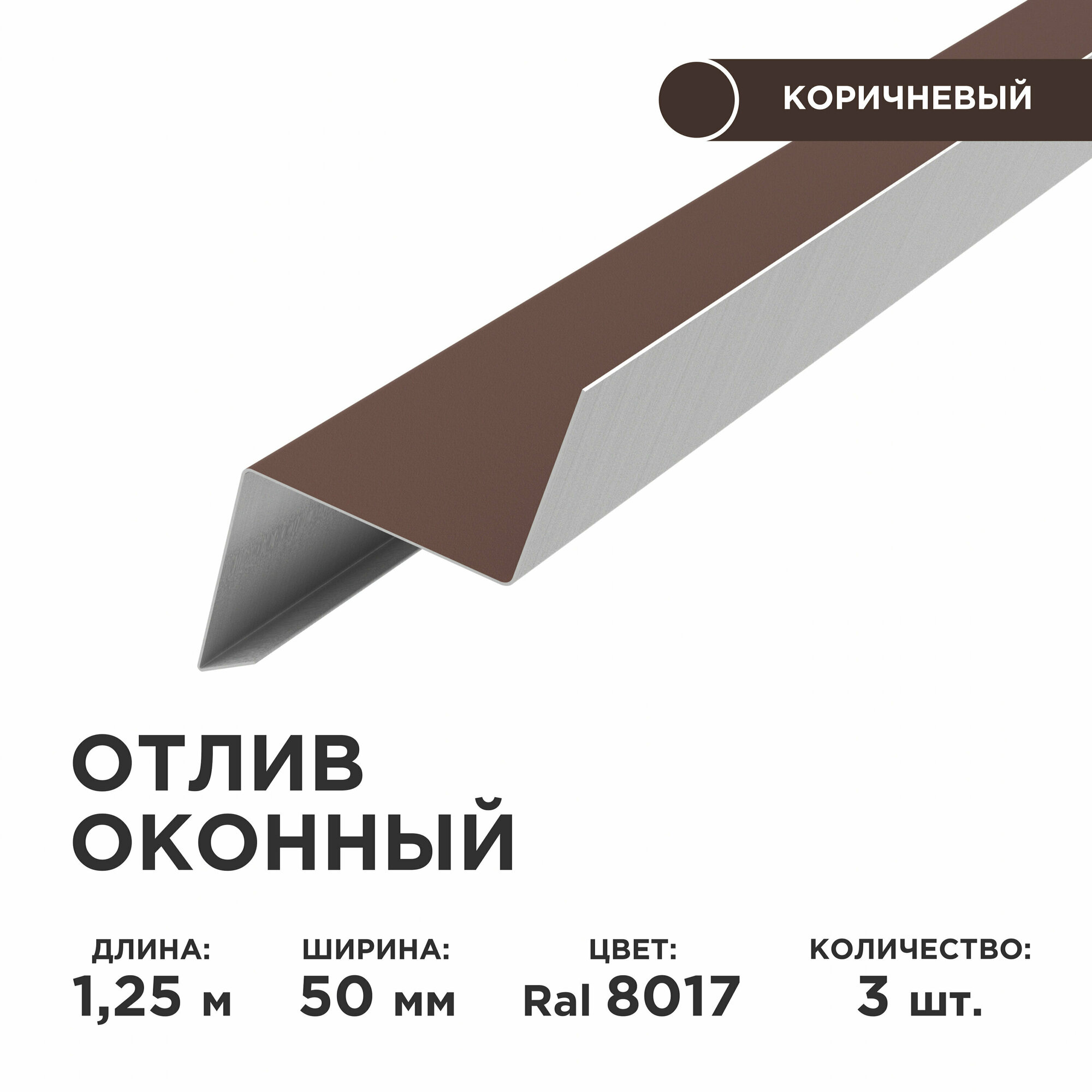 Отлив оконный ширина полки 50мм/ отлив для окна / цвет коричневый(RAL 8017) Длина 1,25м, 3 штуки в комплекте: сравнение цен, характеристики, фото, актуальное наличие и цены.