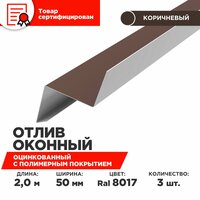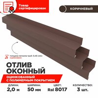 Отлив оконный ширина полки 50мм, цвет шоколад(RAL 8017) Длина 2м, 3 штуки в комплекте: сравнение цен, характеристики, фото, актуальное наличие и цены.