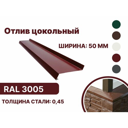 Купить Отлив цокольный 50мм RAL-3005 красный 2000мм 10шт с доставкой по всей России. Отлив цокольный 50мм RAL-3005 красный 2000мм 10шт: сравнение цен, характеристики, фото, актуальное наличие и цены.