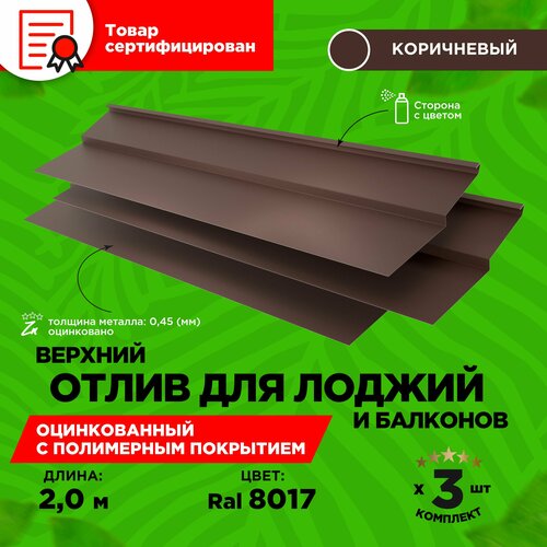 Отлив верхний для балконов и лоджий. Длина 2 метра. 3 единицы в комплекте. Цвет шоколад RAL 8017: сравнение цен, характеристики, фото, актуальное наличие и цены.