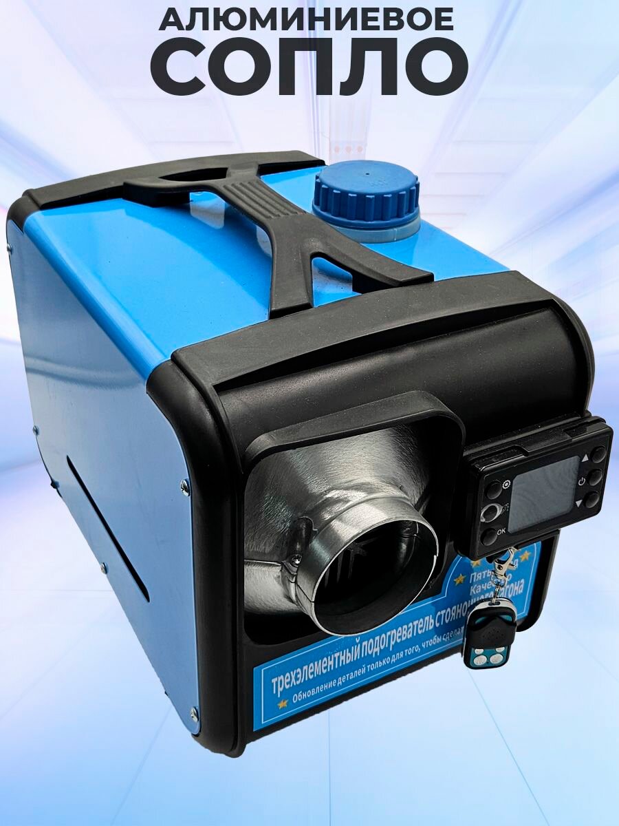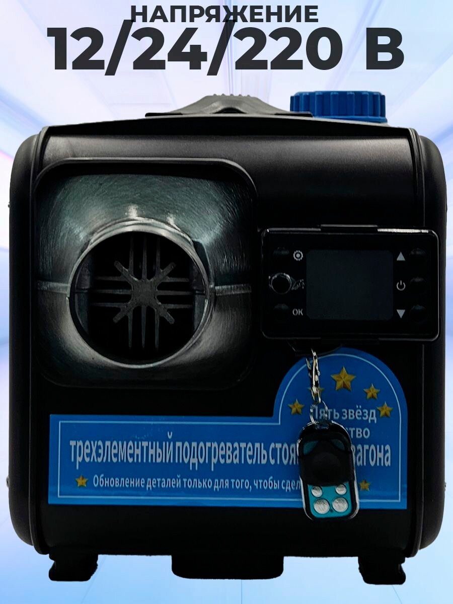 • Отопитель • Топливный бак 5л • Кабель с предохранителем • Пульт дистанционного управления • Труба воздухозаборника гофрированная • Труба выхлопная из нержавеющей стали • Труба гофрированная для подачи нагретого воздуха • Пластина для установки • Воздушный фильтр • Топливный фильтр • Комплект для установки