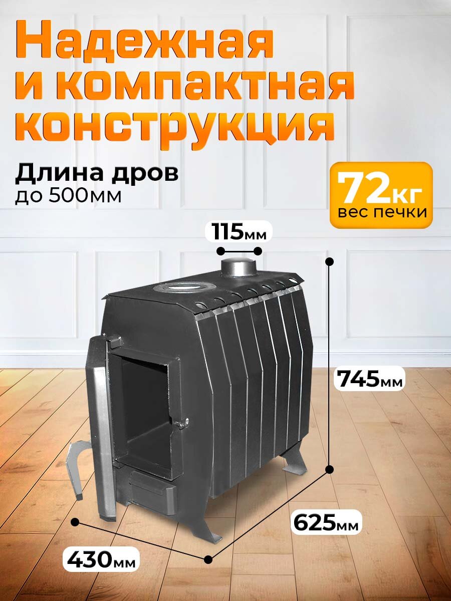 Печь отопительная Матрица-100 (1.1) дровяная Теплодар для дачи, дома и гаража 70-100 м3