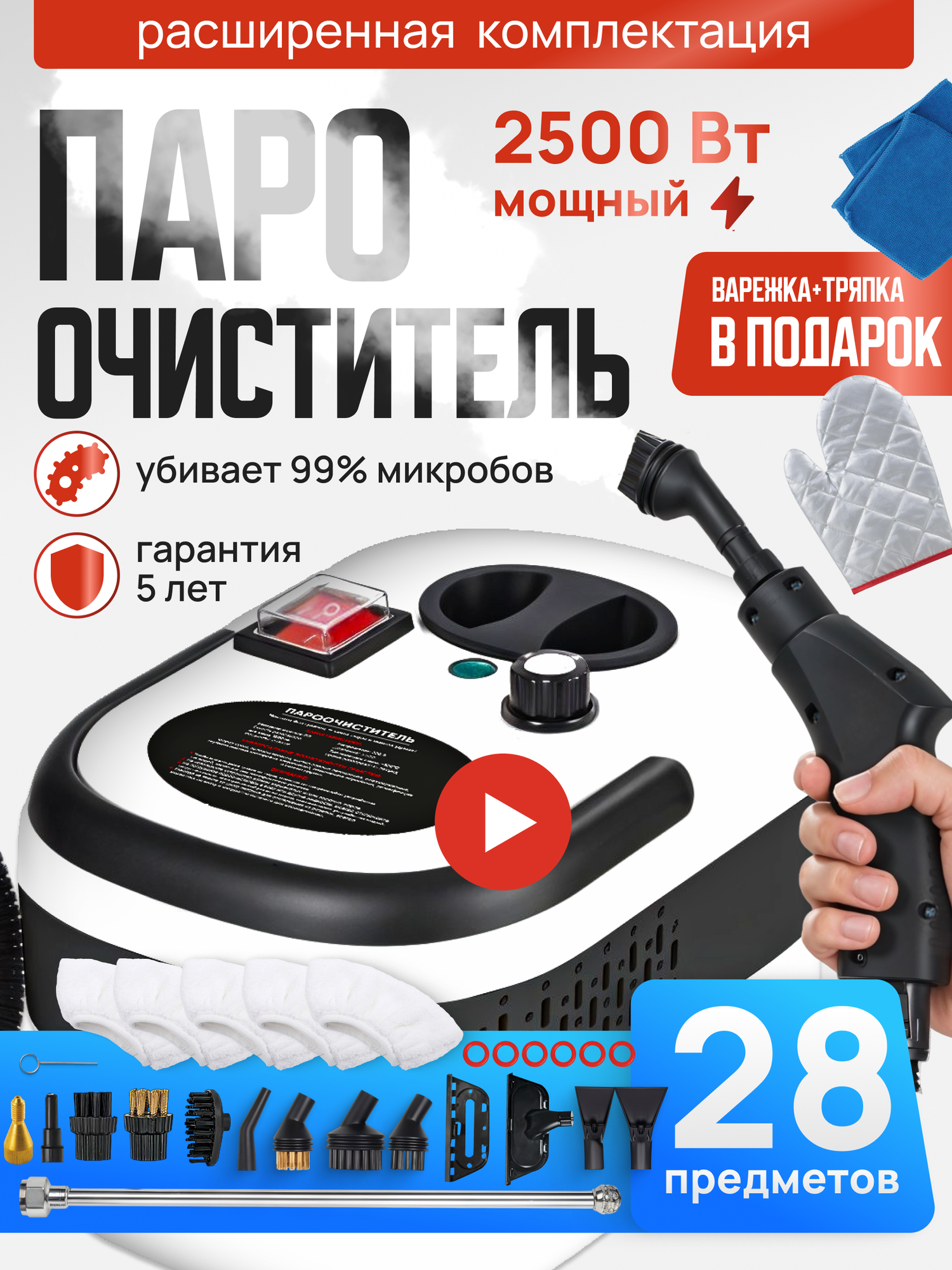 Купить Пароочиститель мощный парогенератор для уборки 2500W, 3 бара, 28 предметов с доставкой по всей России.