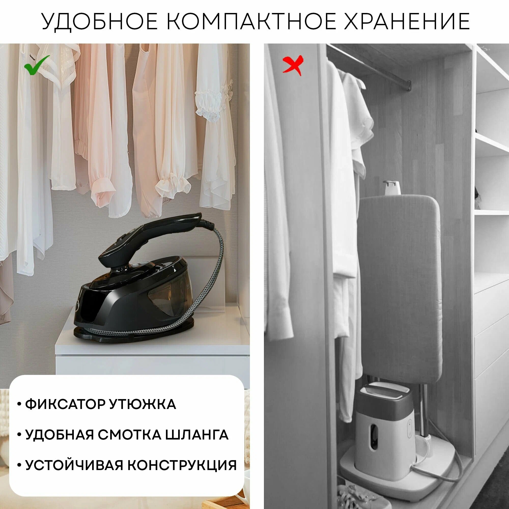 Отпариватель для одежды (ручной отпариватель + парогенератор) PLS-H04 создан для тех, кто ценит свое время и стремится продлить жизнь своим вещам как можно дольше. С помощью паровой станции можно быстро и качественно привести в порядок любые вещи и изделия из текстиля. При этом парогенератор для глажки может использоваться и как отпариватель, и как классический утюг, модель может использоваться как для обычной сухой глажки, так и для глажки паром. Большой объем резервуара для воды (600 мл) делает отпариватель для одежды куда более удобным, чем простой ручной отпариватель – нет необходимости постоянно доливать воду в резервуар в процессе использования. Парогенератор имеет мощность 2500 Вт, модель является такой же мощной, как и вертикальный отпариватель, а также устойчива на любой поверхности. Парогенератор для одежды успешно справляется со всеми видами тканей: полиэстером, хлопком, шелком, шерстью, нейлоном, льном. Керамическое покрытие утюжка нежно и мягко скользит по материи, не причиняя вреда Вашей одежде. Для особо деликатных тканей в комплекте идет защитная насадка. Утюг для одежды с отпаривателем обладает понятным и простым управлением: с помощью одной кнопки вы можете установить температуру глажения (80°, 100°, 120°, 140°, 160°, 180° или 200°С), с помощью второй – выбрать низкий, средний, или высокий уровень подачи пара. Эргономичный поворотный дизайн утюжка позволяет прогладить все детали и труднодоступные места на одежде: выбирайте вертикальную ориентацию утюжка для разглаживания складок и мелких деталей, или горизонтальную для обработки больших поверхностей. Модель может использоваться как парогенератор для уборки дома – для дезинфекции текстиля, игрушек и мягких предметов мебели, а также успешно справляться с неприятным и затхлым запахом. Таким образом, подготовка вещей к сезону становится простым и быстрым процессом. Отпариватель для одежды является очень компактным и не занимает много места в отличие от вертикальных отпаривателей. Отпариватель PLANTA PLS-H04 заключен в стильный и компактный корпус с прорезиненными ножками и удачно впишется в любой интерьер, став незаменимой частью домашнего быта.