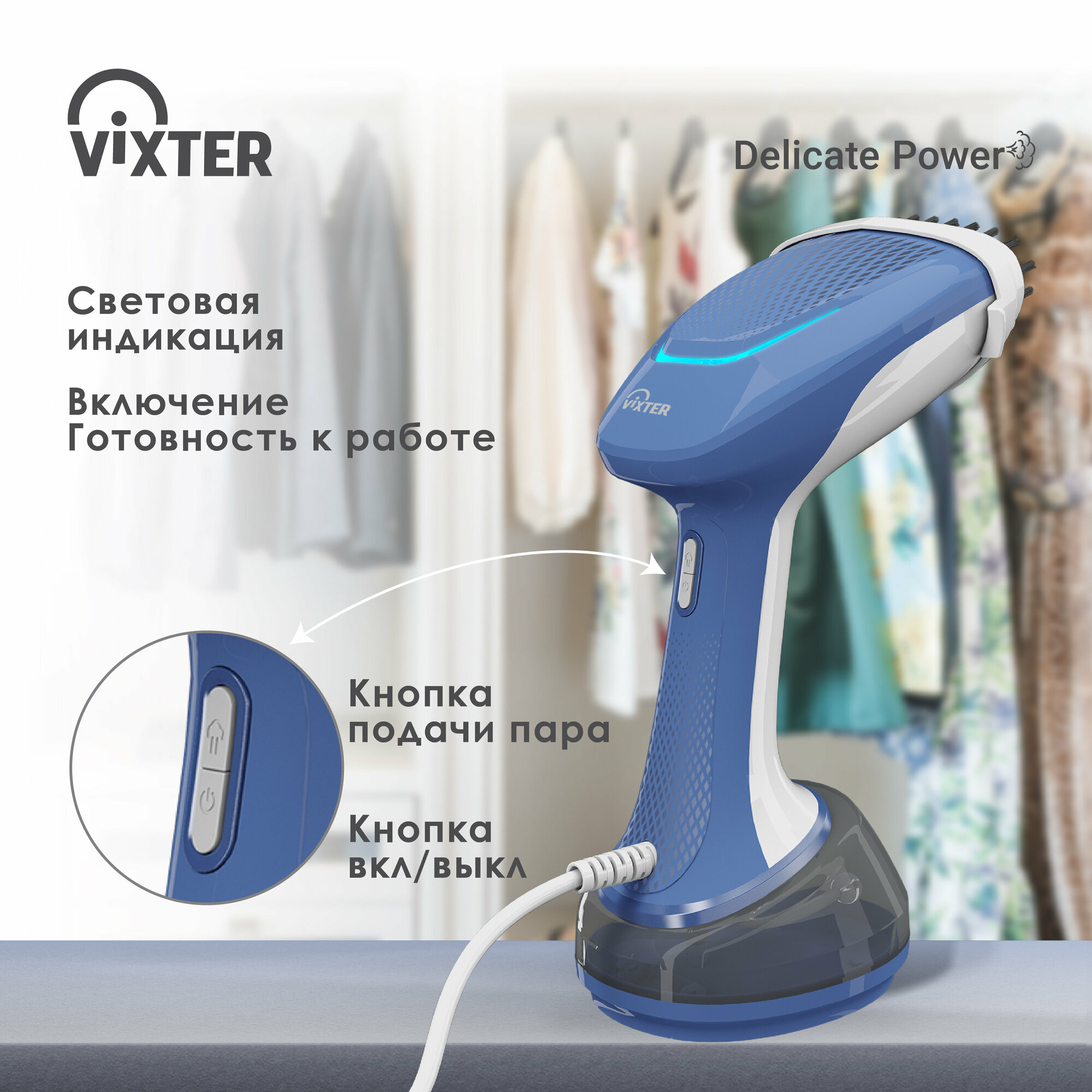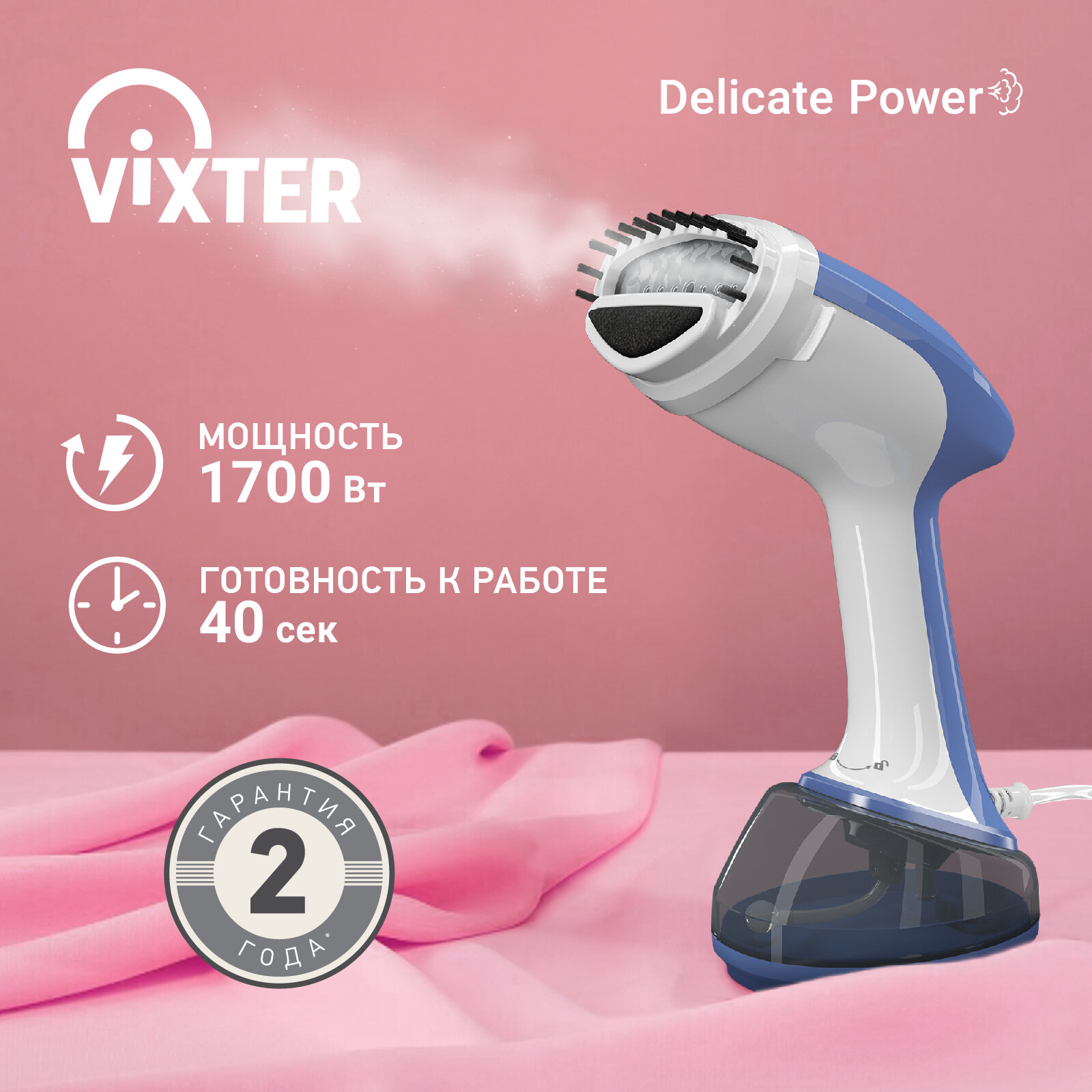 Купить Отпариватель VIXTER мощный 380 мл/40 сек/1700 Вт ручной дорожный мини компактный, для одежды, с насадками GSH-1790 с доставкой по всей России.