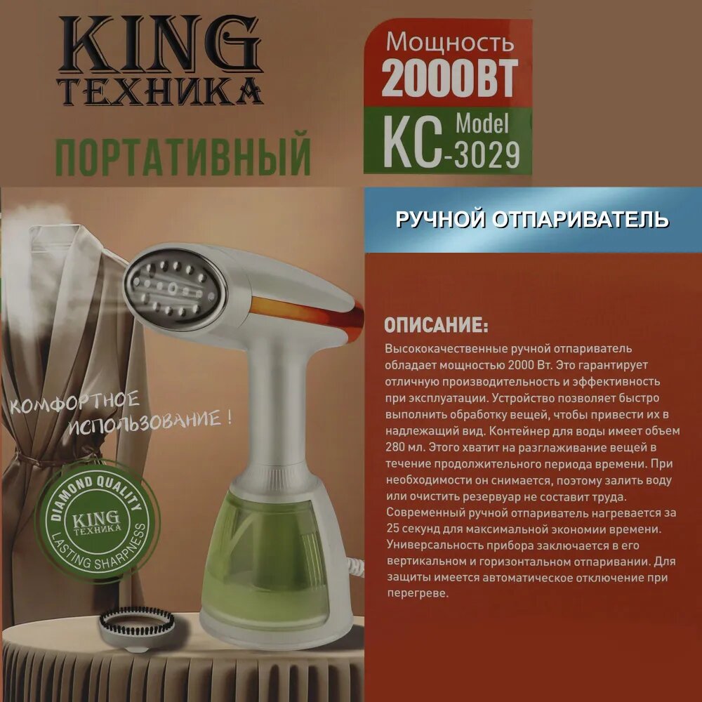 Отпариватель ручной для одежды King KC-3029, 2000 Вт, зеленый-оранжевый: сравнение цен, характеристики, фото, актуальное наличие и цены.