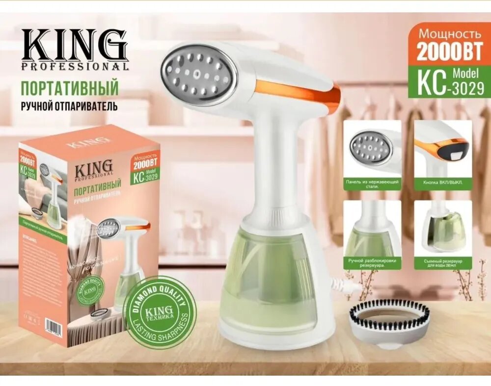 Купить Отпариватель ручной для одежды King KC-3029, 2000 Вт, зеленый-оранжевый с доставкой по всей России.