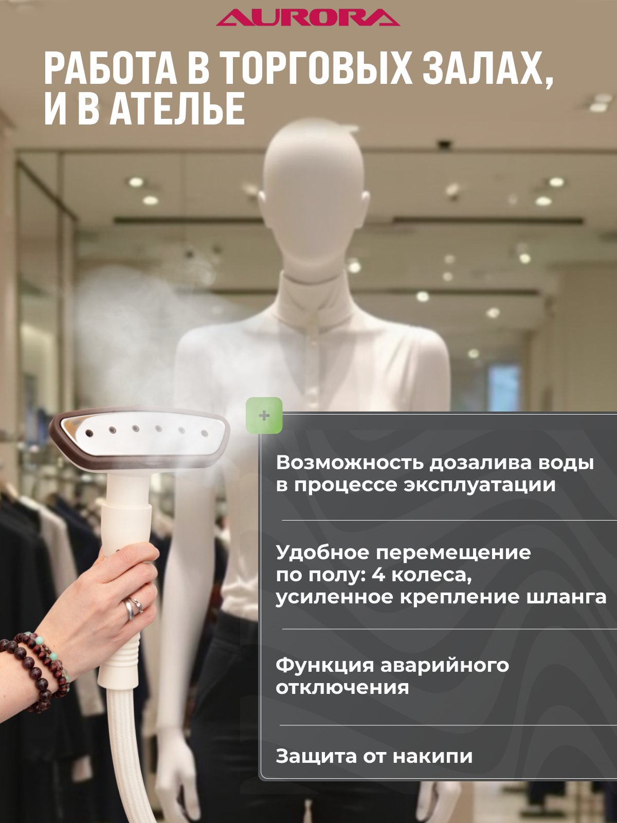 Отпариватель для одежды напольный Aurora PRO 2300, большой резервуар 3л, мощность 2400Вт, подача пара 80г/мин: сравнение цен, характеристики, фото, актуальное наличие и цены.