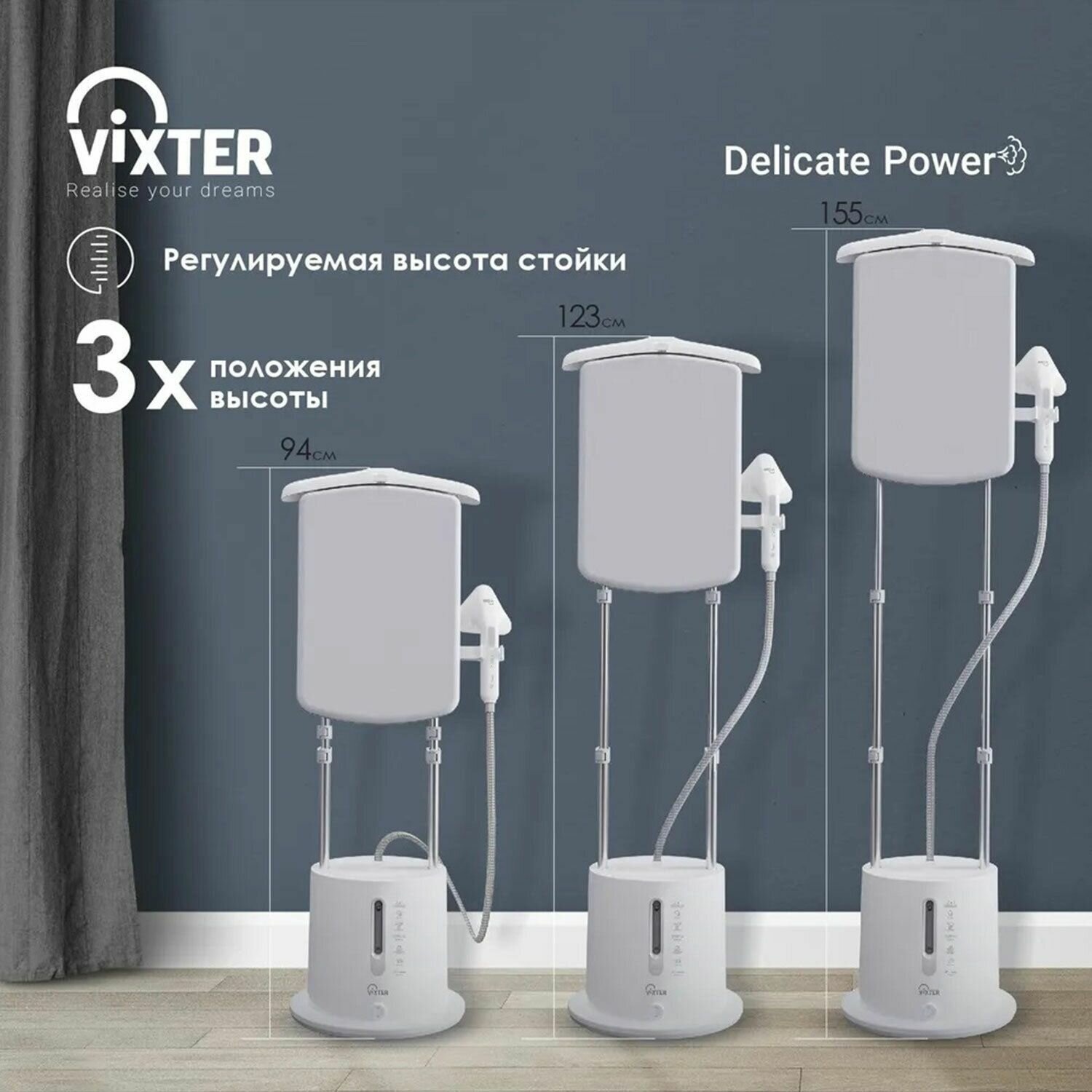 Отпариватель напольный VIXTER GSV-5300 с доской, 2300 Вт, пар 45 г/мин, резервуар 1,7 л, 3 режима, белый: сравнение цен, характеристики, фото, актуальное наличие и цены.