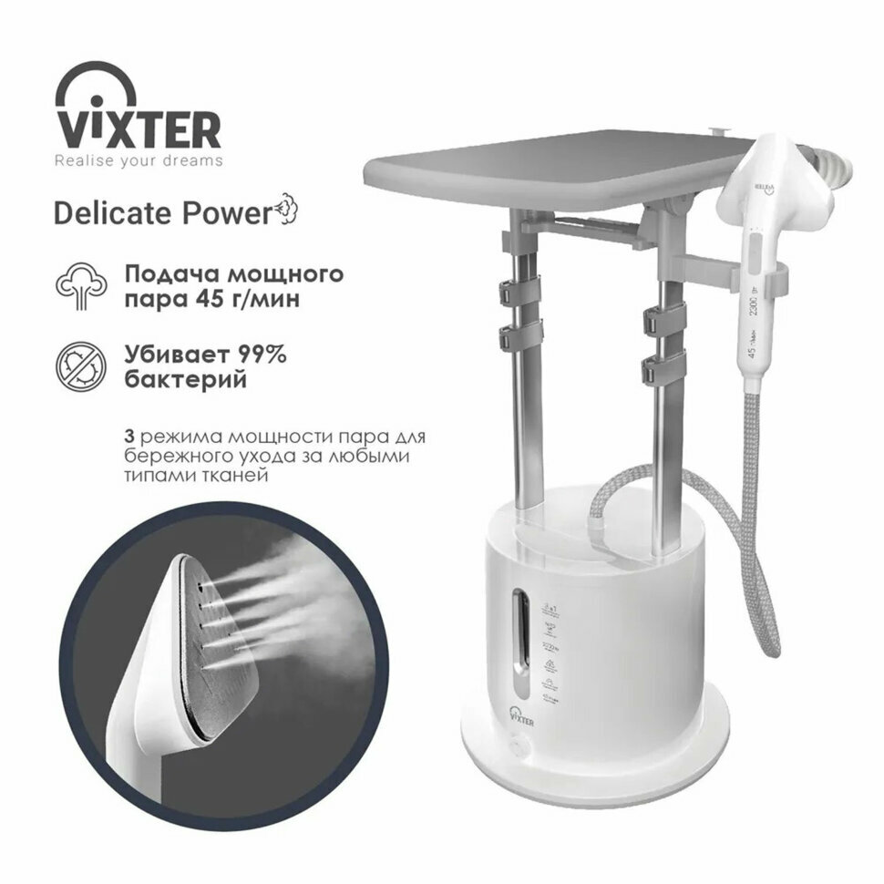 Отпариватель напольный VIXTER GSV-5300 с доской, 2300 Вт, пар 45 г/мин, резервуар 1,7 л, 3 режима, белый, 456709: сравнение цен, характеристики, фото, актуальное наличие и цены.