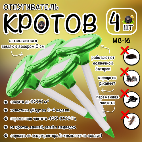 Отпугиватель кротов, мышей, землероек, грызунов, на солнечной батарее с подсветкой, МС- 16, Планета Садовод, 4 штуки: сравнение цен, характеристики, фото, актуальное наличие и цены.