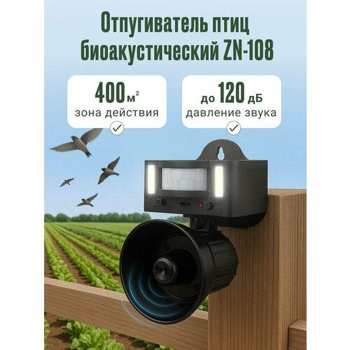 Биоакустический отпугиватель ZN-108 — это эффективное устройство для защиты дачных участков, садов, игровых площадок, автостоянок и других территорий от птиц и мелких вредителей, таких как грызуны, кролики и белки.