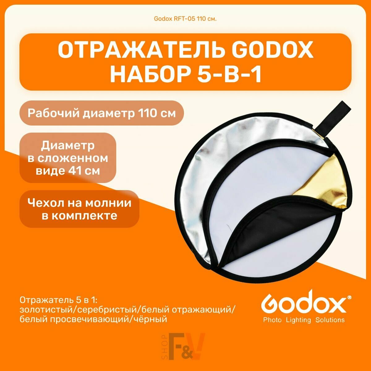 Отражатель 5-в-1: полупрозрачный, белый, серебряный, золотой, чёрный