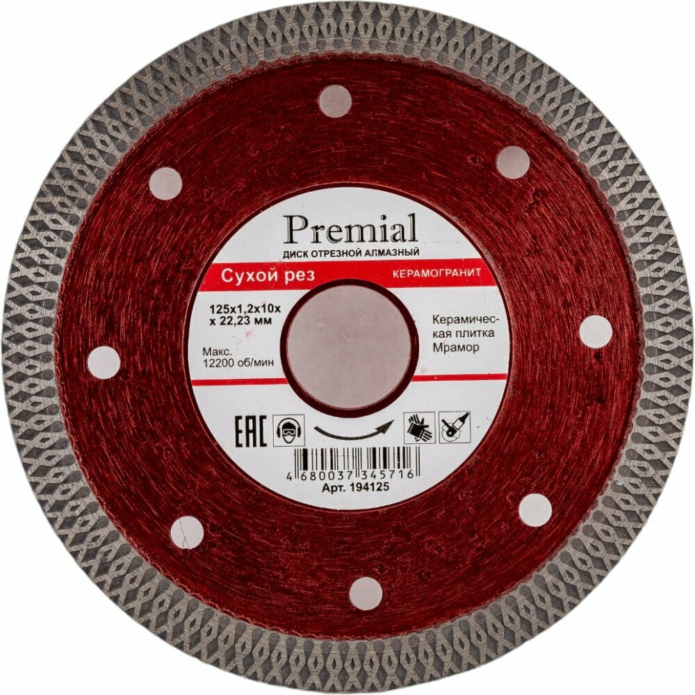 Диск алмазный Hardcore / Хардкор Premial по керамограниту, сухой рез, диаметр 125мм, посадочный 22.23мм, высота сегмента 10мм, рез 1.2мм / расходные материалы и оснастка: сравнение цен, характеристики, фото, актуальное наличие и цены.